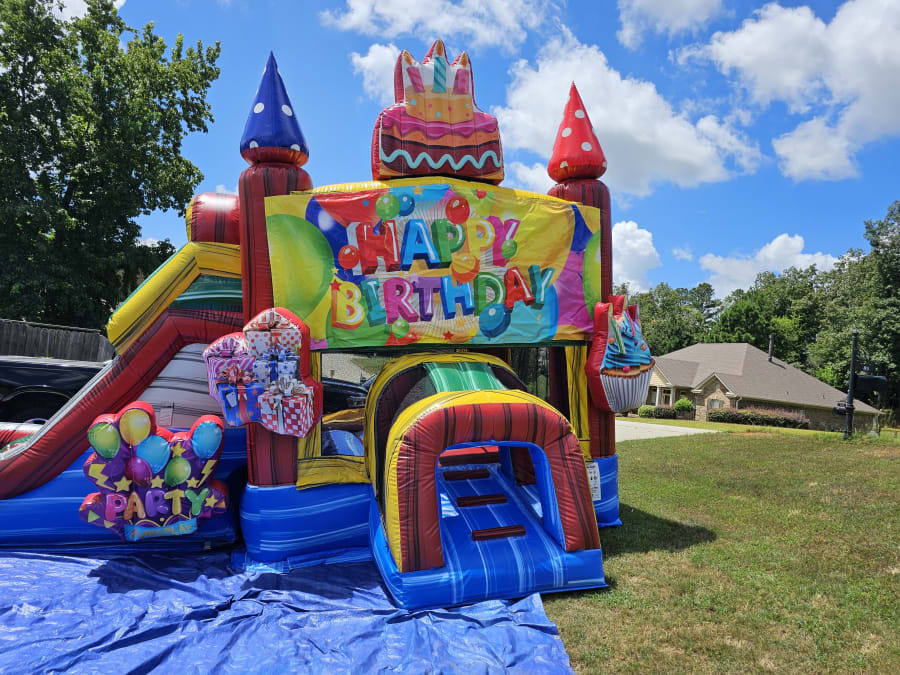 With the Adventurer Wet/Dry Combo, the possibilities are as limitless as your imagination. Kids can explore by bouncing and sliding to their hearts' content. On sunny days, hook up the water feature and let everyone cool off with a refreshing splash – perfect for those hot Alabama afternoons. When the weather is cooler, simply use the dry configuration for classic bouncing and sliding fun. Either way, this unit is a party essential!